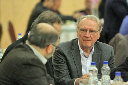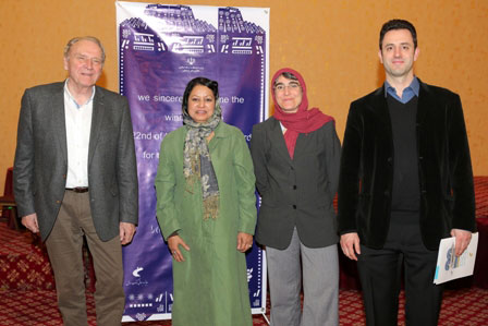 | President Hassan Rouhani honors Danish scolar Hemming Jorgensen (1st from right) for his book “Ice Houses of Iran” during Iran’s Book of the Year Awards ceremony in Teheran on February 8, 2015. | Culture Minister Ali Jannati (2nd from left) and Deputy Culture Minister for Cultural Affairs seyyed Abbas Salehi are also seen in the photo, (IRNA/Saraj Samadi) |